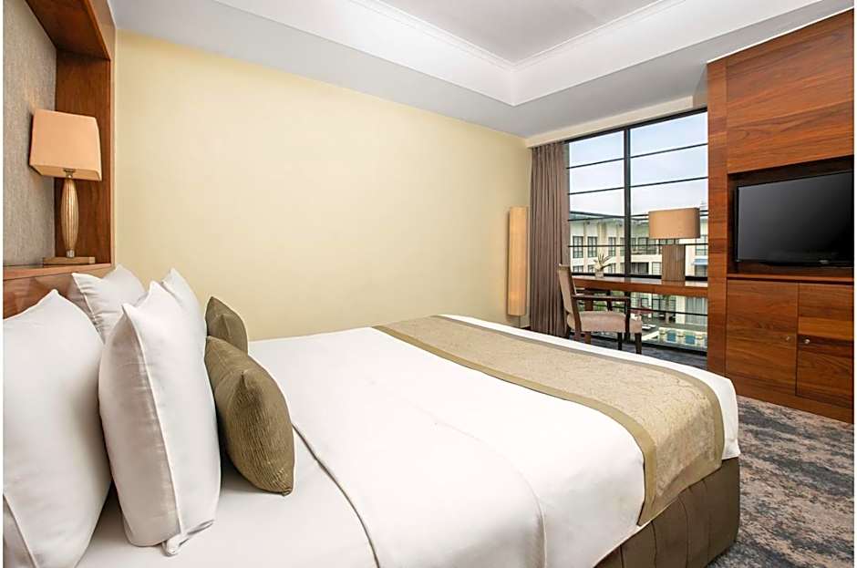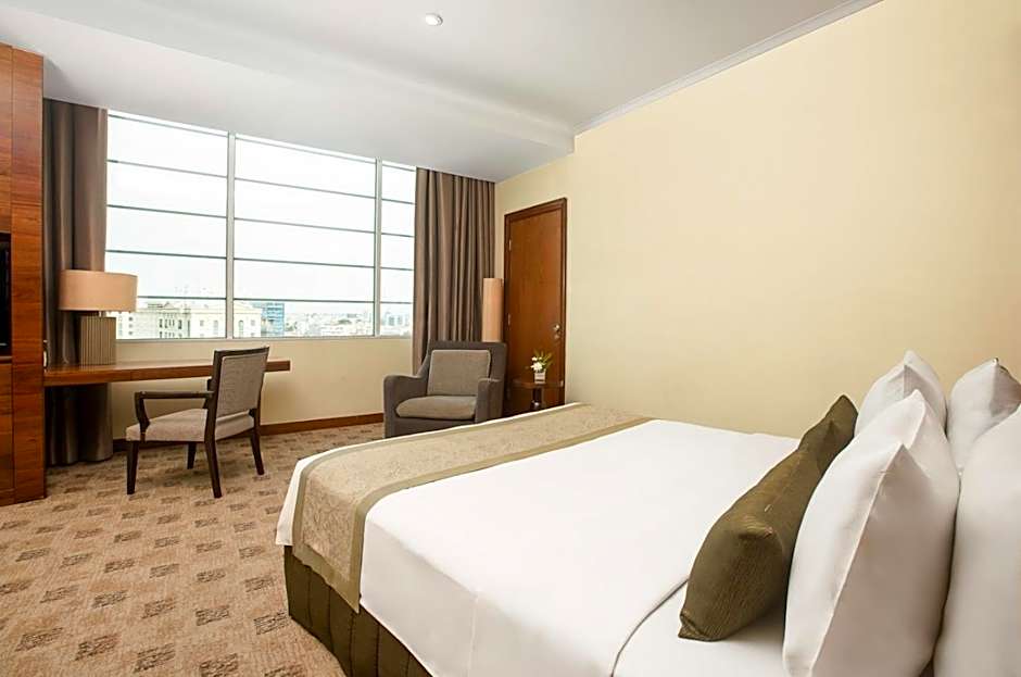 This air-conditioned room offers city view and fitted with a seating area, a wardrobe, a flat-screen cable TV, high-speed WiFi connection, a personal safe and a mini-bar. Private bathroom features bath or shower facility with toiletries, bathrobes, slippers and a hairdryer.