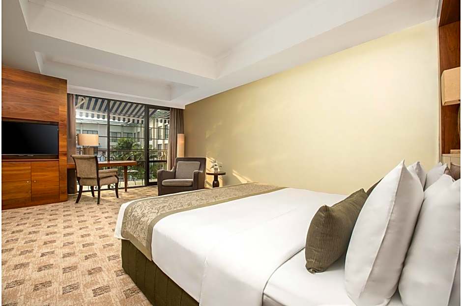 Offering an even larger space and pool view, this air-conditioned suite has a separate living and dining area. It's fitted with a wardrobe, a flat-screen cable TV, high-speed WiFi connection, a personal safe and a mini-bar. Private bathroom features bath or shower facility with toiletries, slippers and a hairdryer.